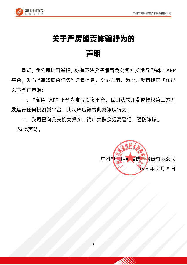歡迎關(guān)注廣州市高科通信技術(shù)股份有限公司!